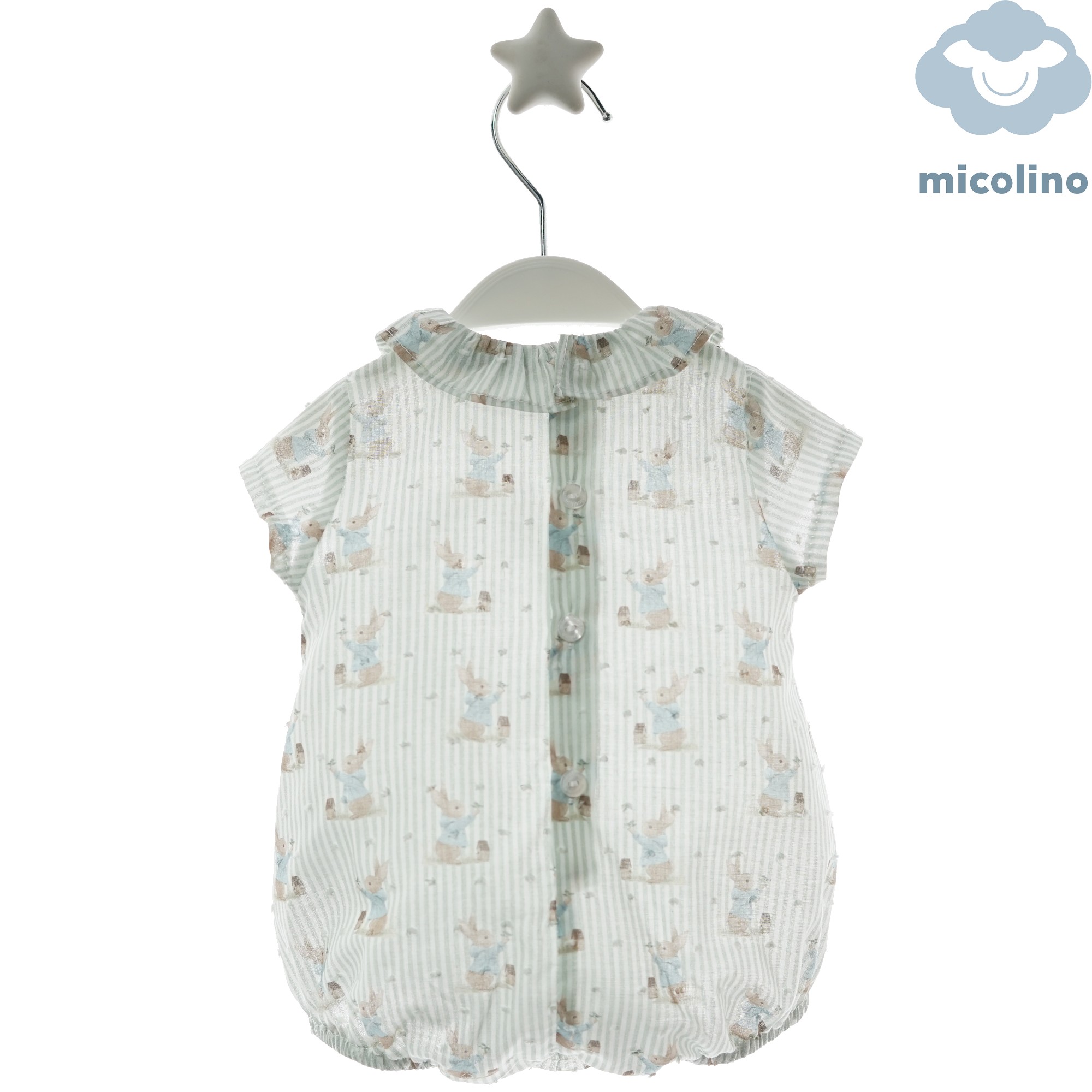 REF: 0956MVER-26 .Pelele de bebé con cuello redondito tipo polito con estampados de dibujitos en ton..