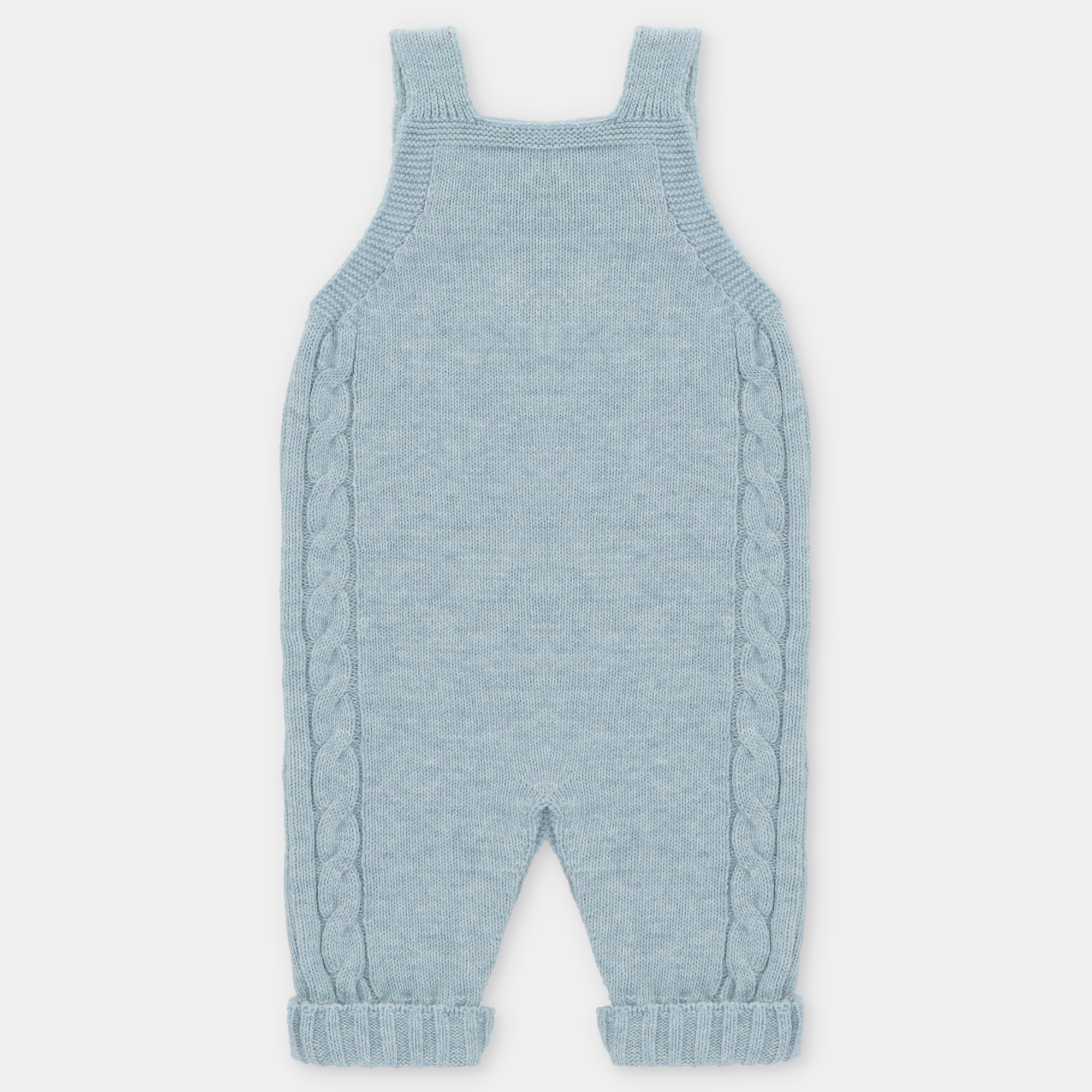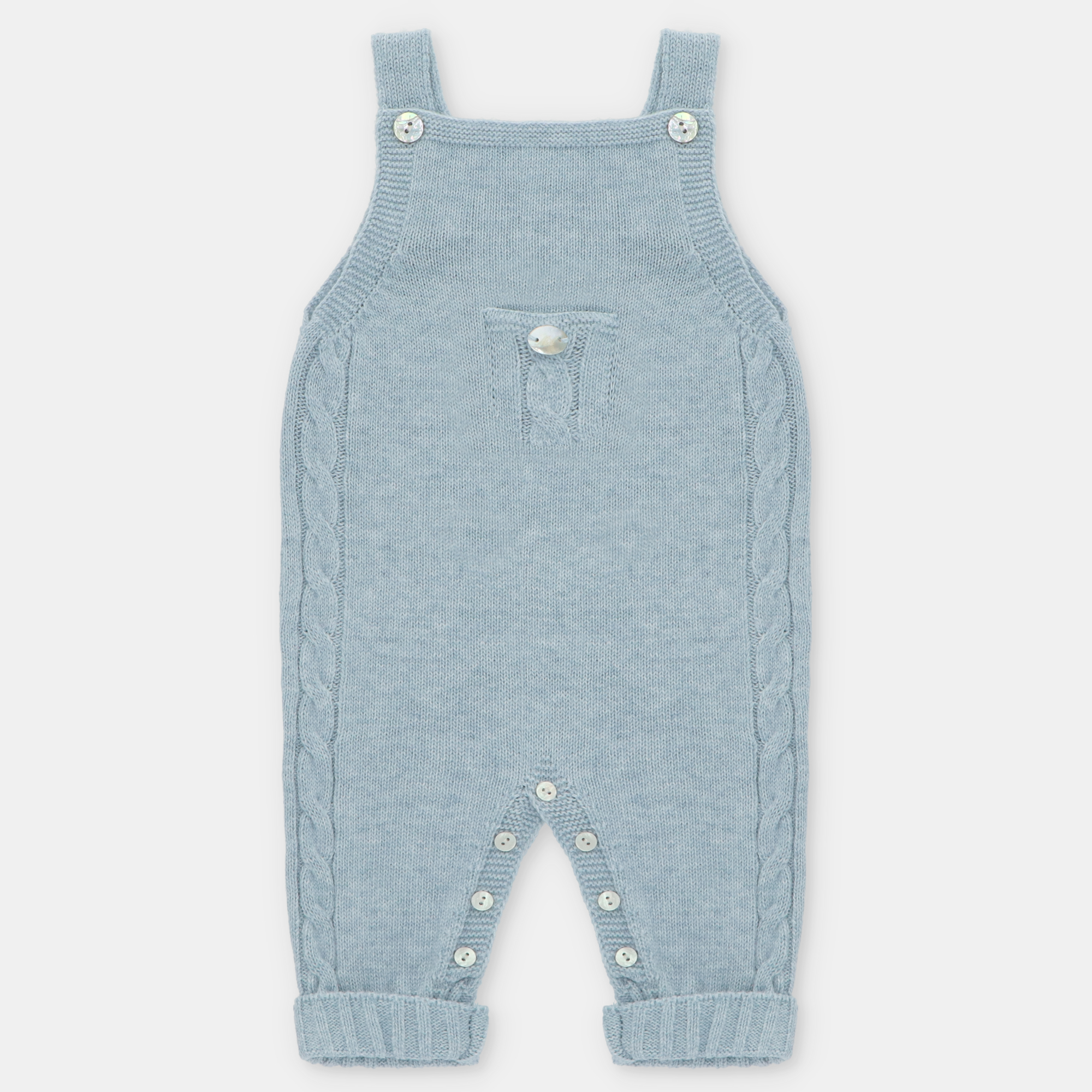 - Peto de bebé en punto con tirantes rectos y botonadura de coco.